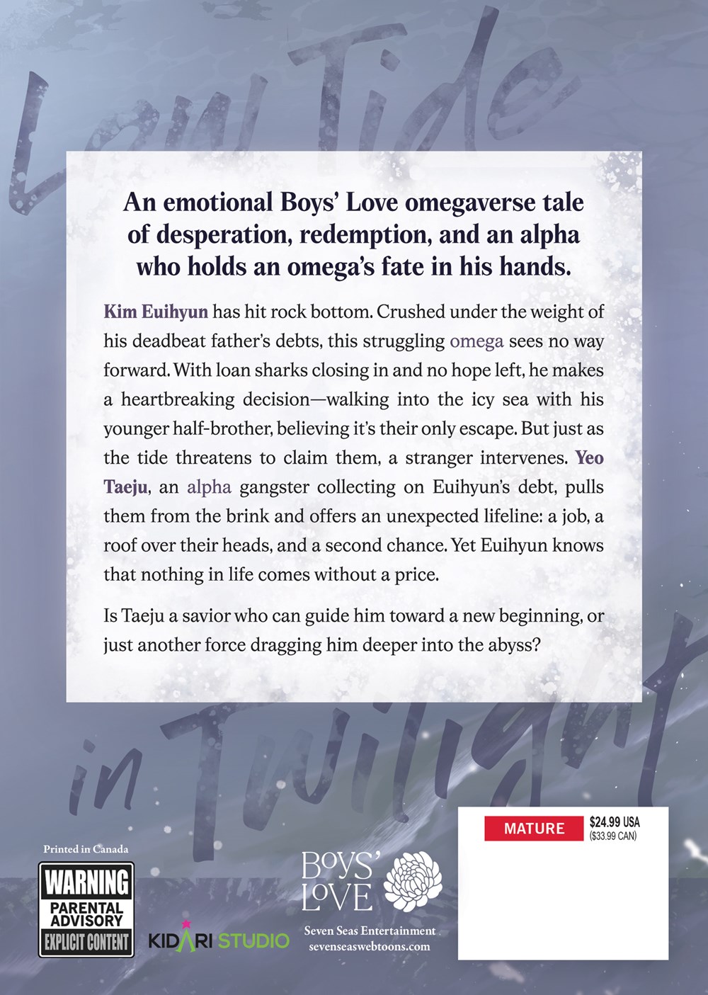 Kim Euihyun has hit rock bottom. Crushed under the weight of his deadbeat father’s debts, this struggling omega sees no way forward. With loan sharks closing in and no hope left, he makes a heartbreaking decision—walking into the icy sea with his younger half-brother, believing it’s their only escape. But just as the tide threatens to claim them, a stranger intervenes. Yeo Taeju, an alpha gangster collecting on Euihyun’s debt, pulls them from the brink and offers an unexpected lifeline: a job, a roof over their heads, and a second chance. Yet Euihyun knows that nothing in life comes without a price.