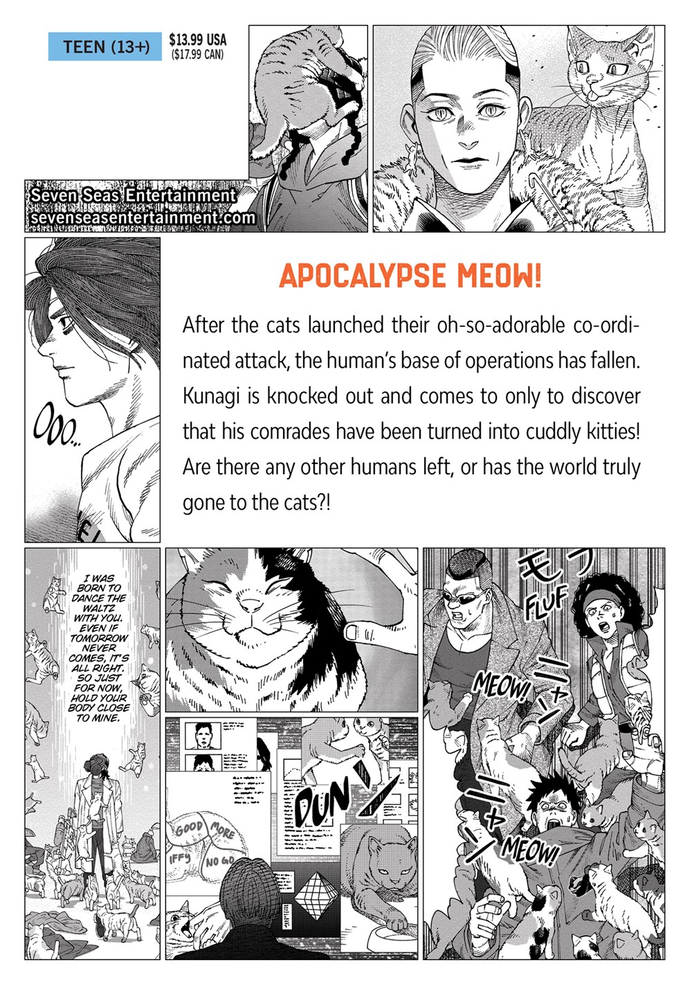 A virus spreads across the world, transforming all humankind into wild, slavering, furry beasts: cats, to be precise. Those few survivors who remain human take refuge in the dark corners of the earth as they fight back against the feline horde. Kunagi, a man with no memory of his past yet a deep knowledge of cats, struggles to hold on with only his wits and a will to survive. Yet the virus transmits merely through cuddles, and Kunagi finds kitties so hard to resist! Is his willpower strong enough to withstand this hair-raising cat-tastrophe?