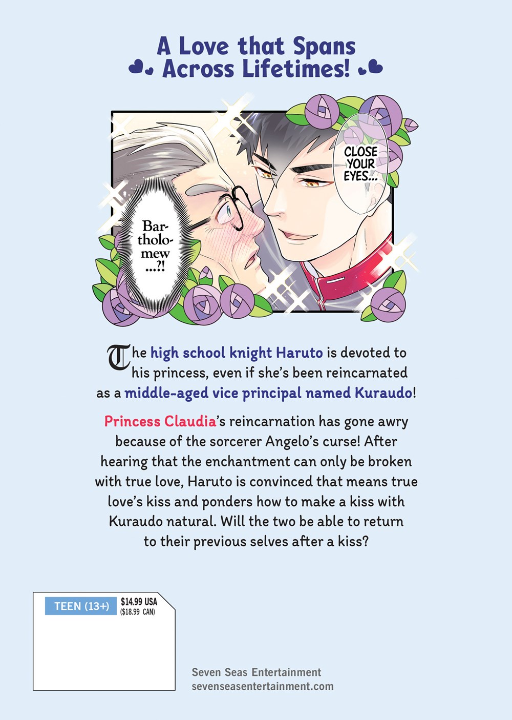 Princess Claudia’s reincarnation has gone awry because of the sorcerer Angelo’s curse! After hearing that the enchantment can only be broken with true love, Haruto is convinced that means true love’s kiss and ponders how to make a kiss with Kuraudo natural. Will the two be able to return to their previous selves after a kiss?